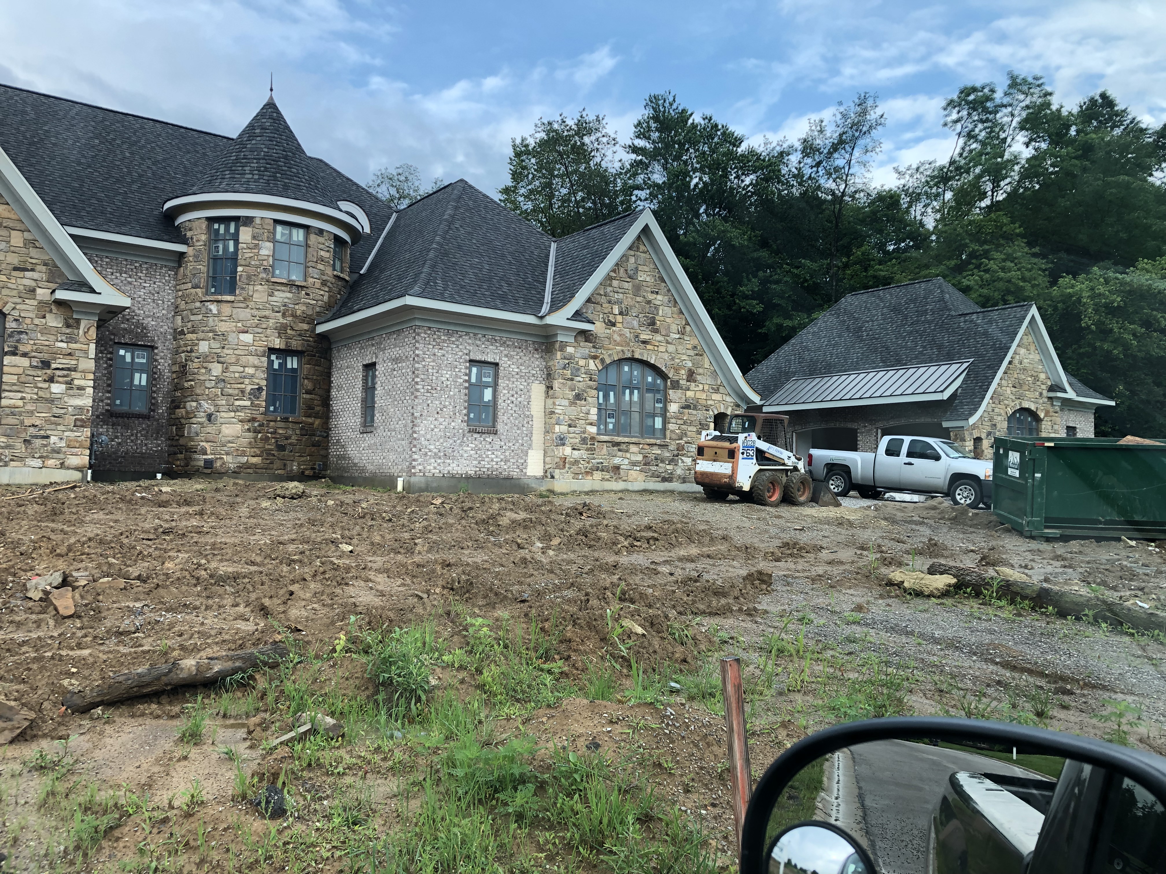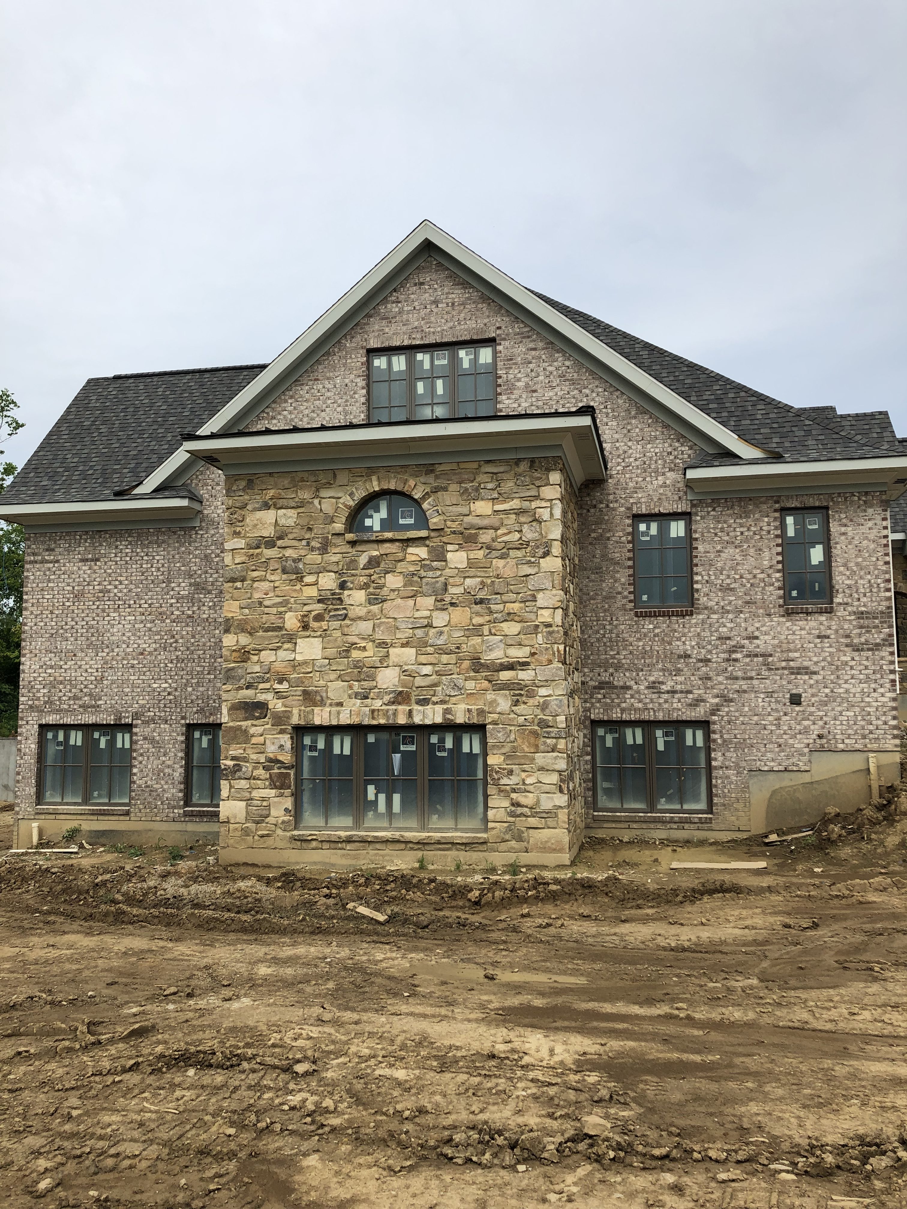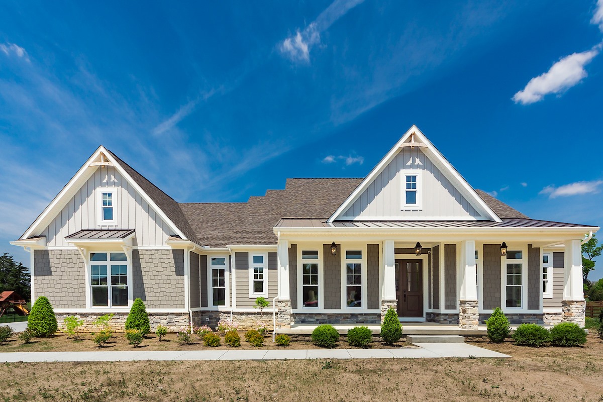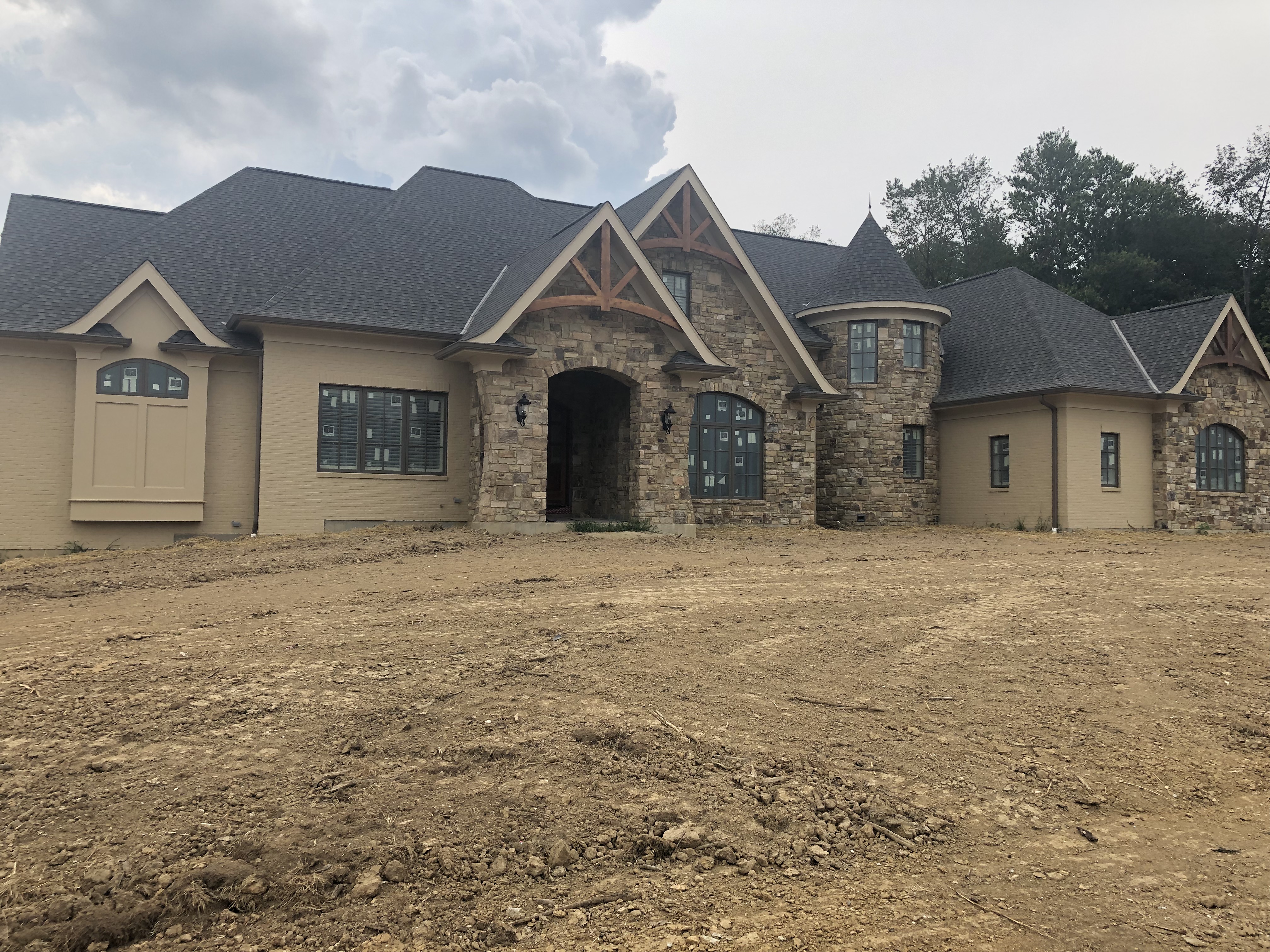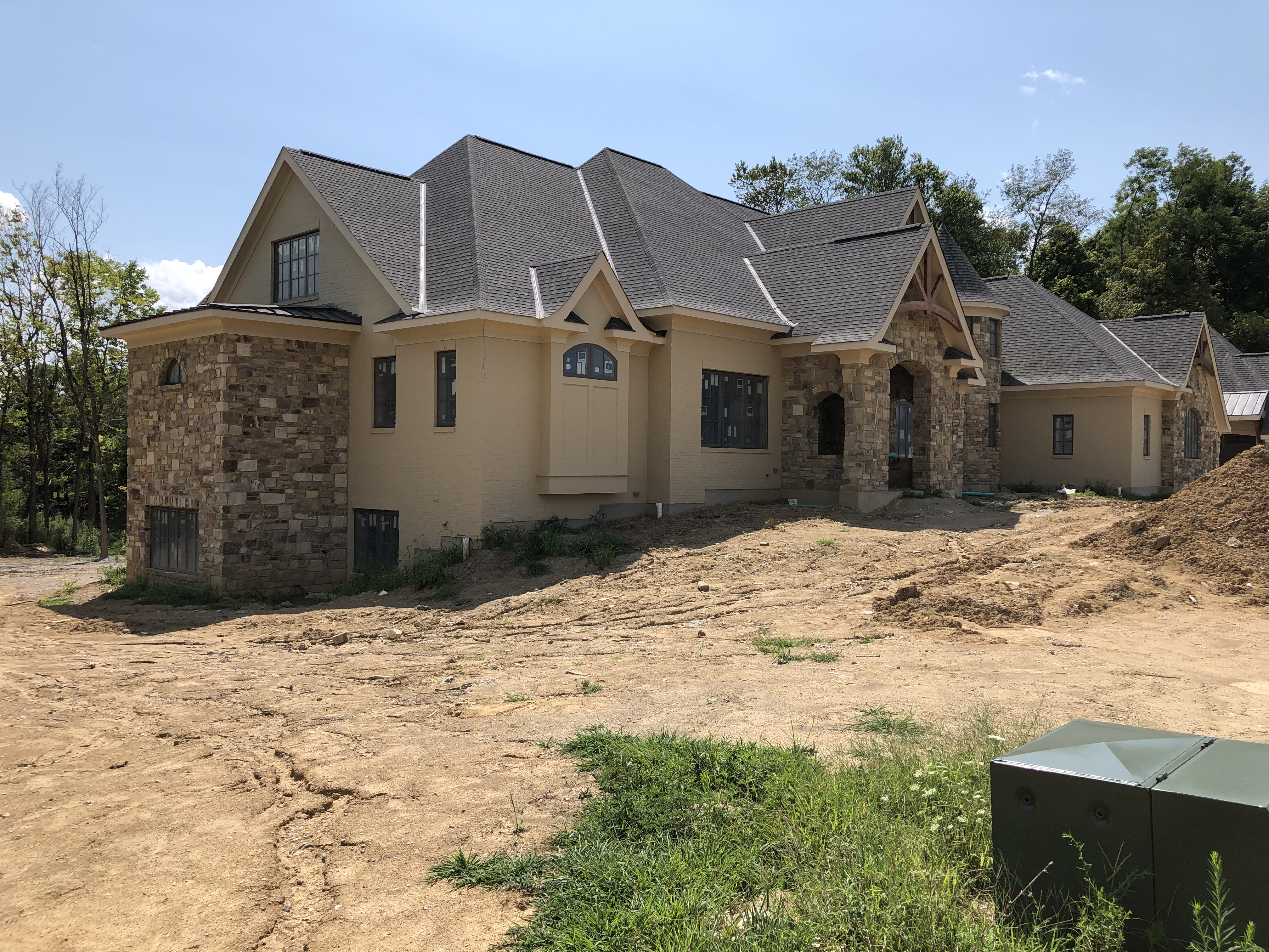 Location Mariemont, Ohio. The architecture is a modern take on English Cottage design with its steep gables and white brick construction.