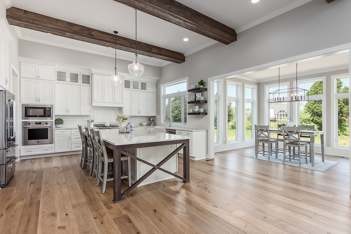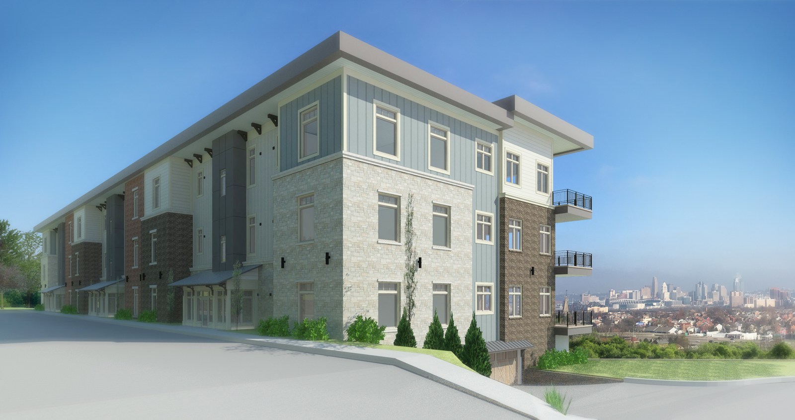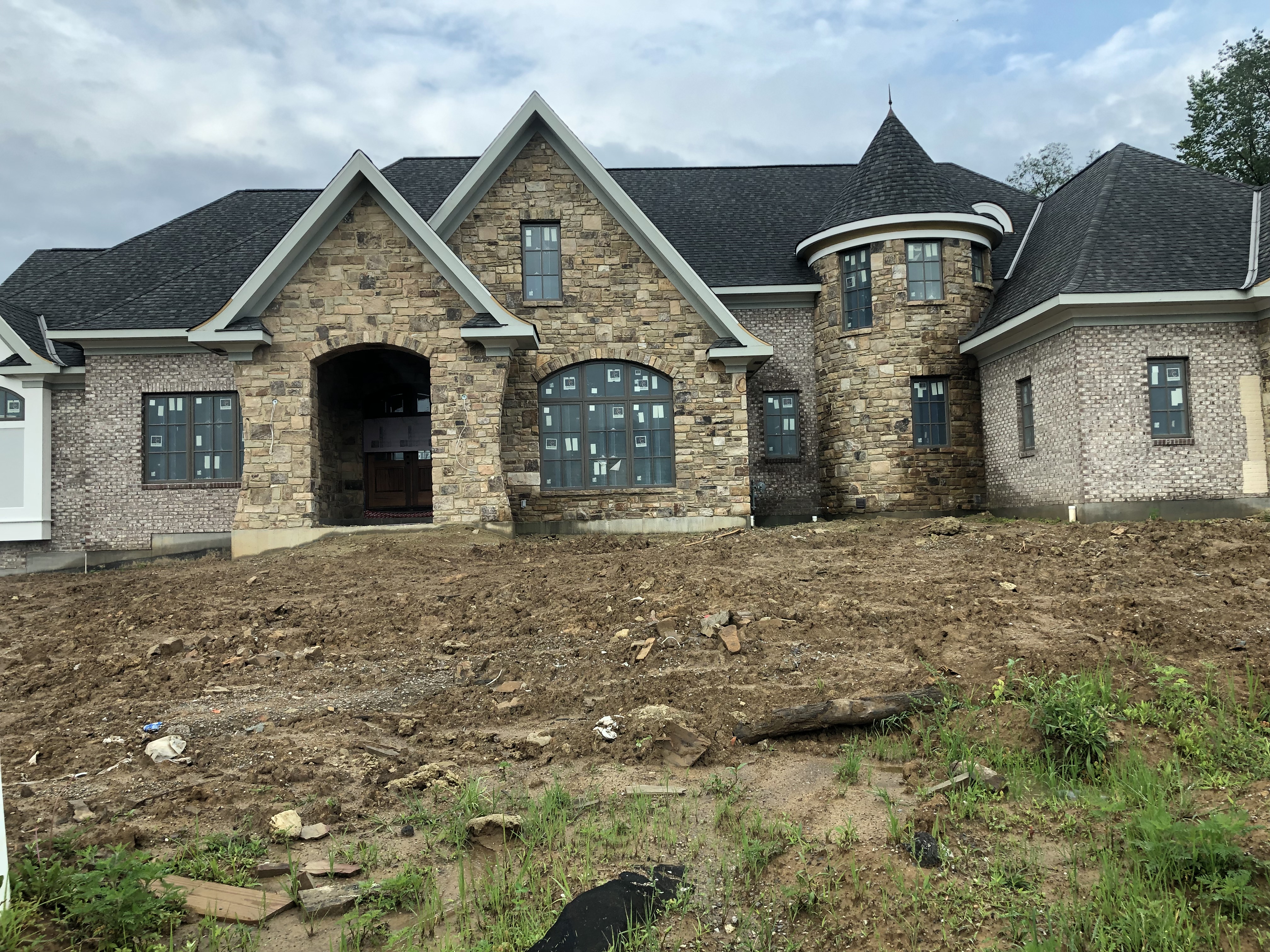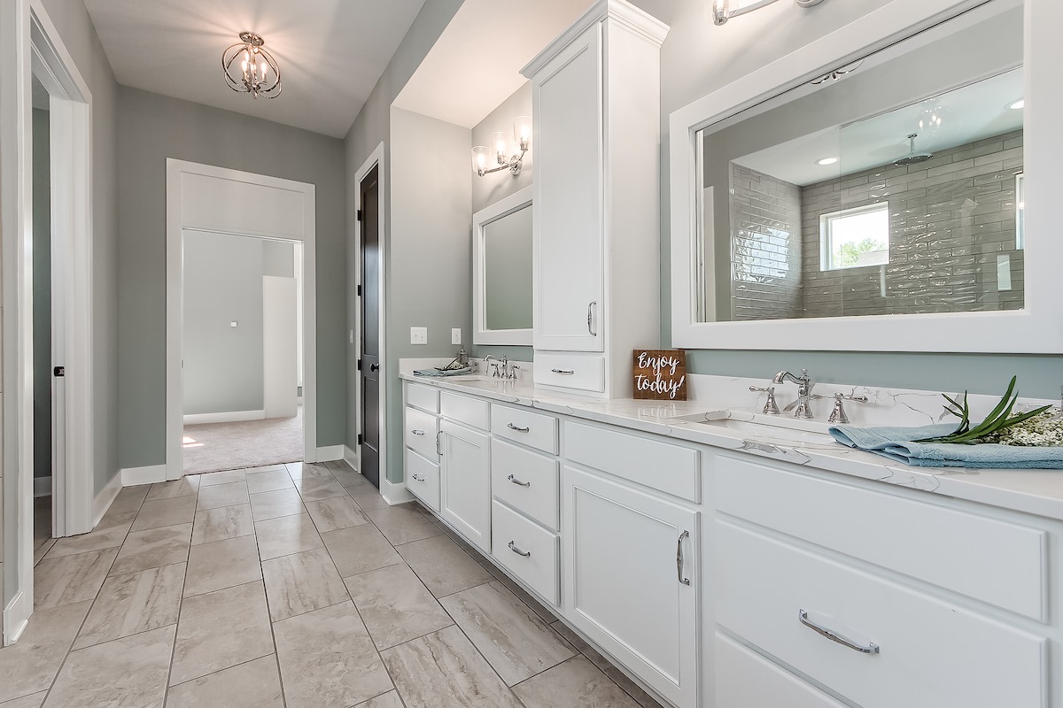 Location Mariemont, Ohio. The architecture is a modern take on English Cottage design with its steep gables and white brick construction.