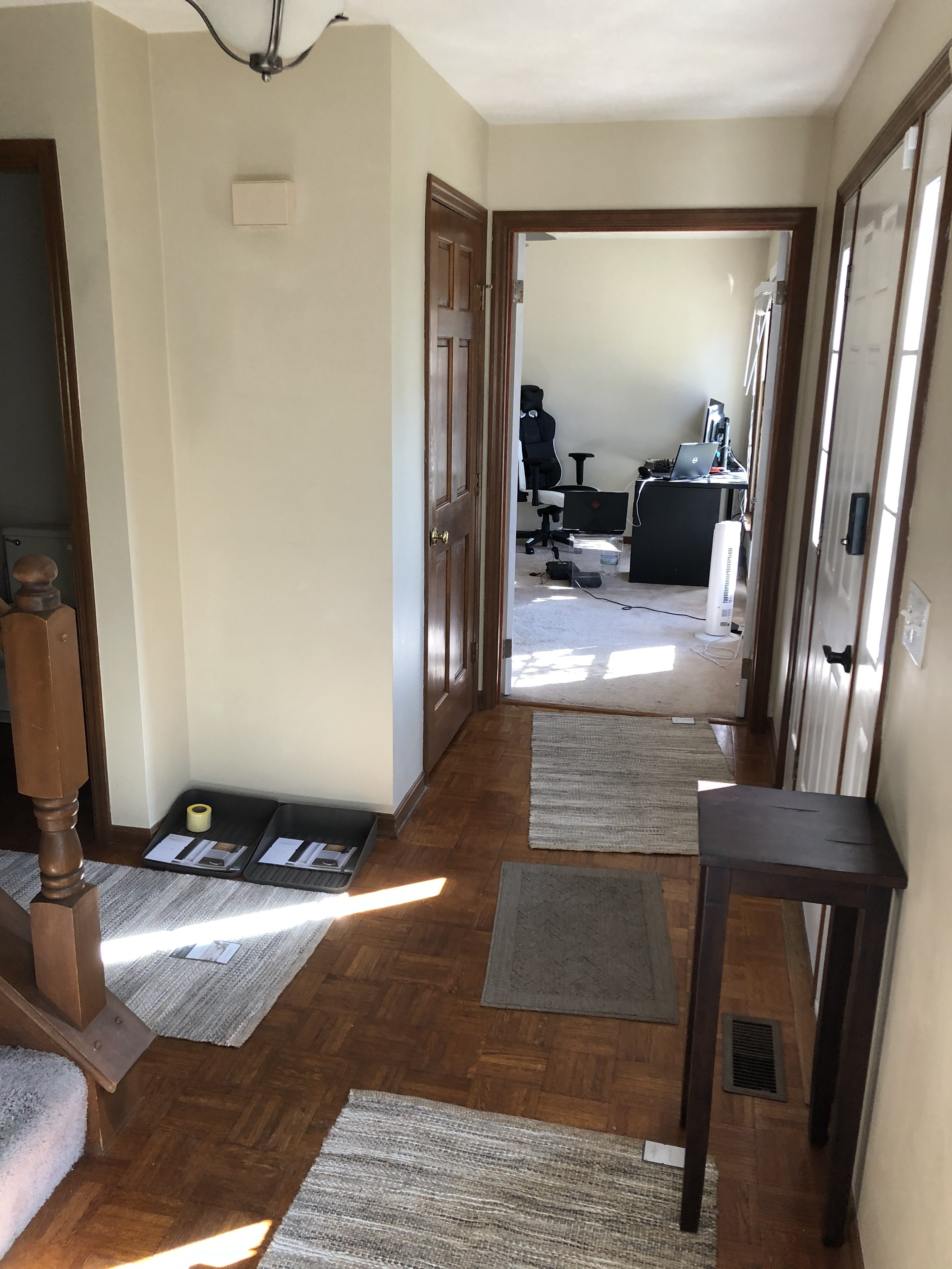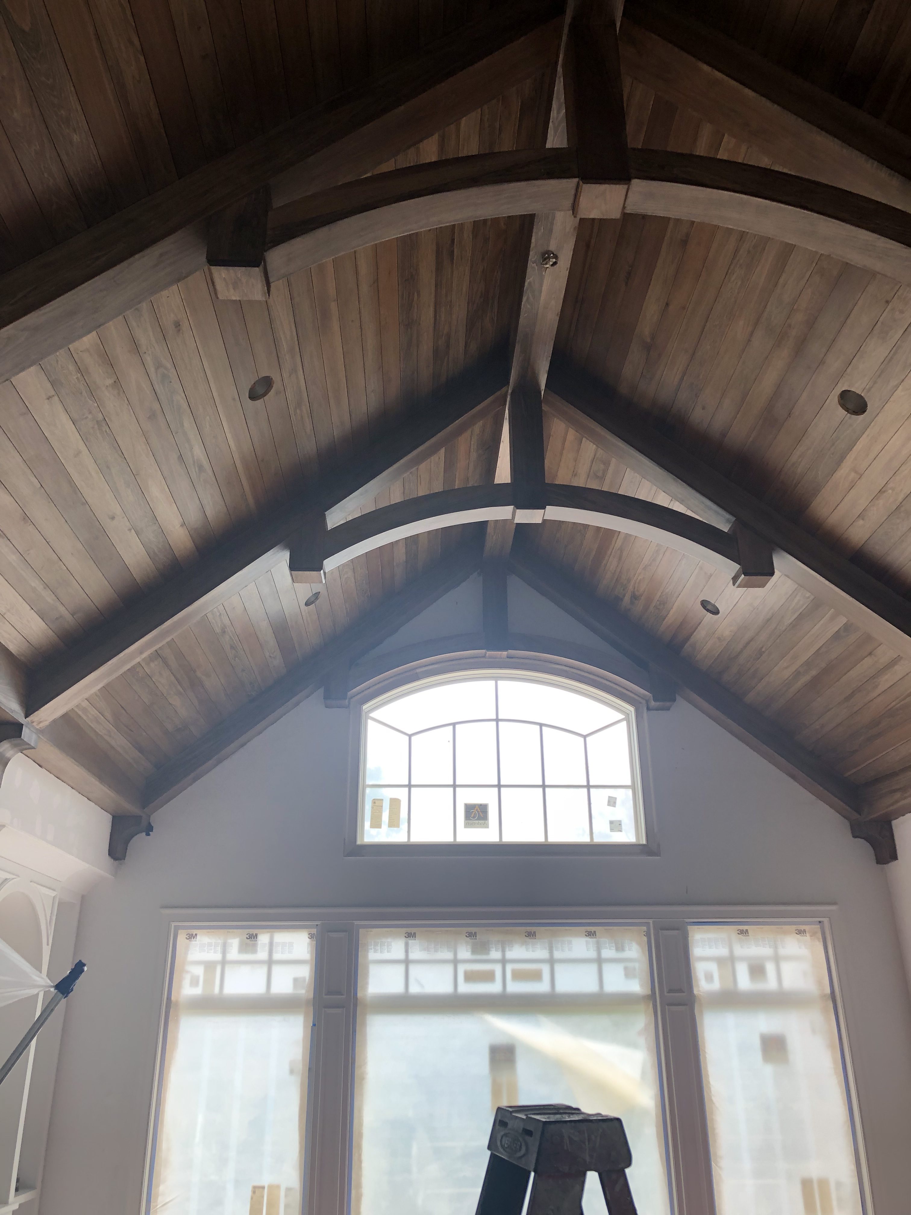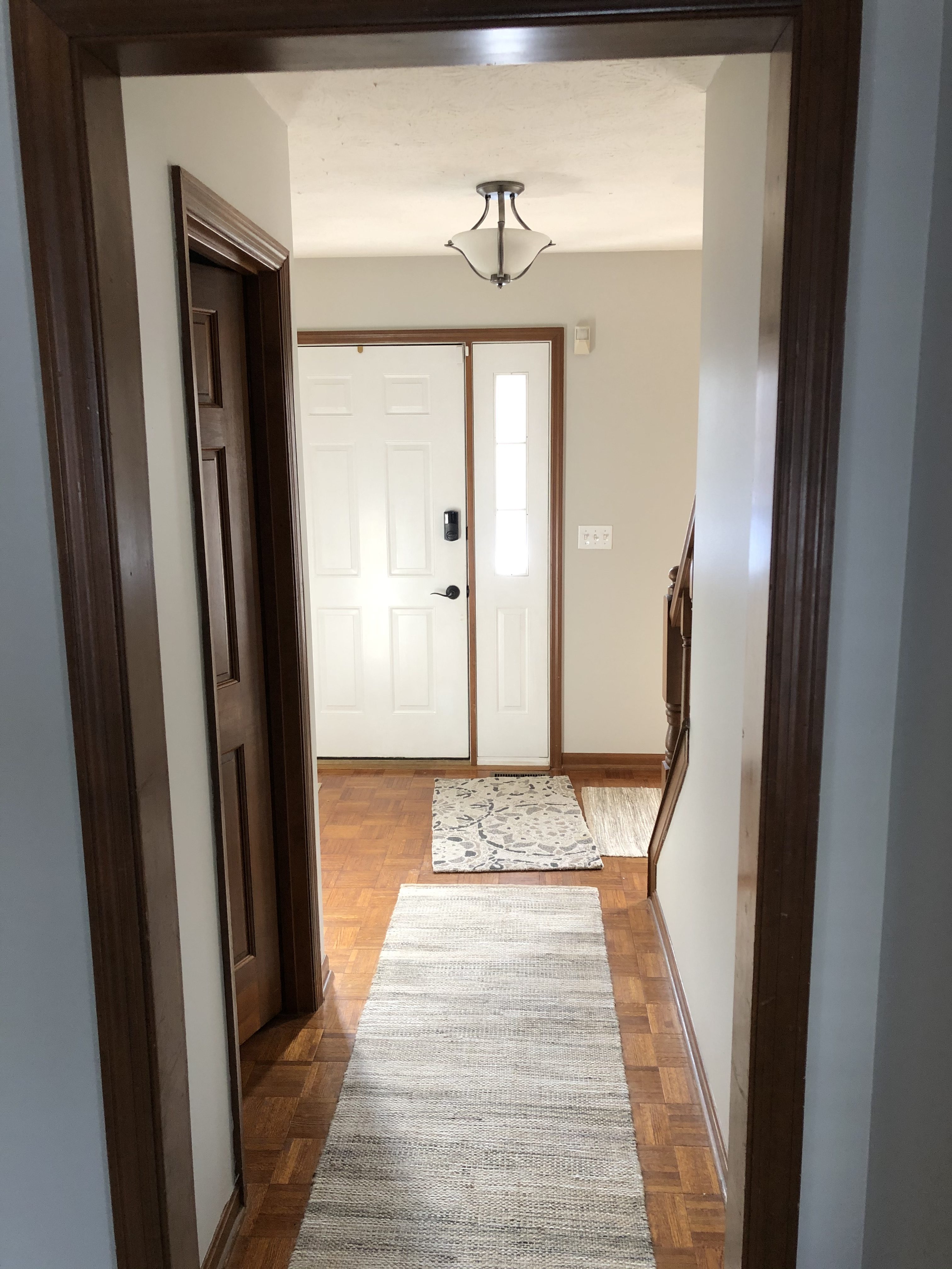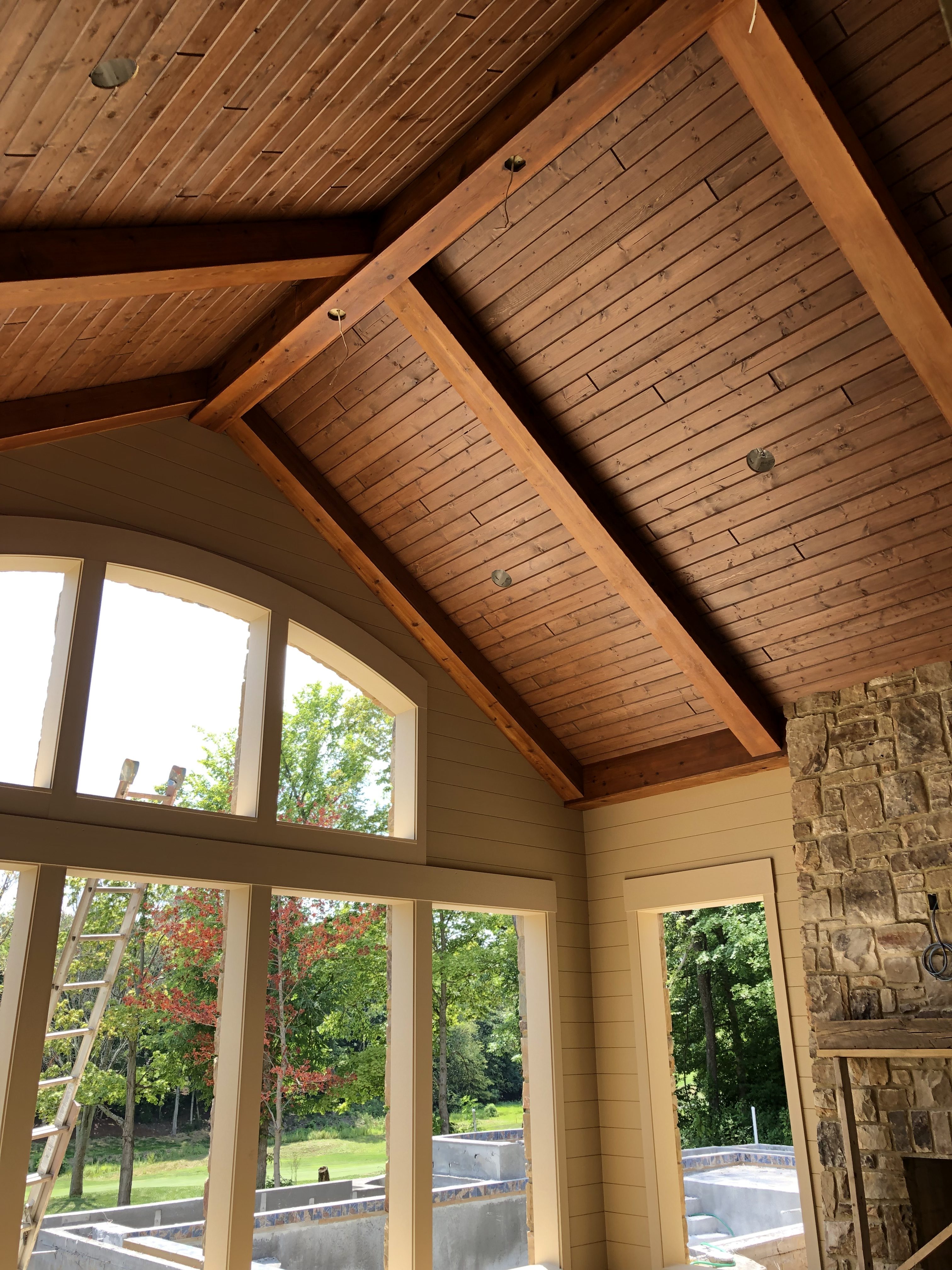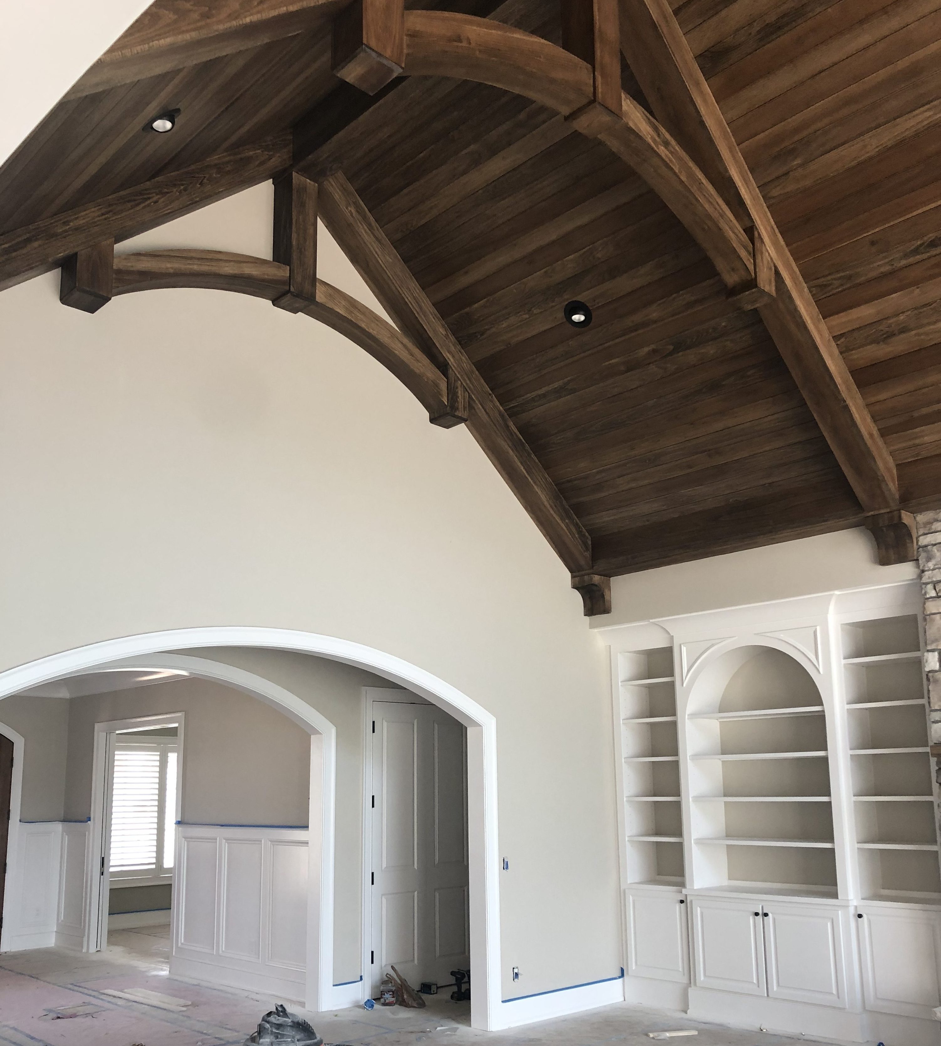 Location Mariemont, Ohio. The architecture is a modern take on English Cottage design with its steep gables and white brick construction.